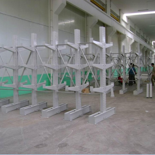懸臂式貨架主要用于存放長形物料,如型材、管材、板材、線纜等,立柱多采用H型鋼或冷軋型鋼,懸臂采用方管、冷軋型鋼或H型鋼,懸臂與立柱間采用插接式或螺栓連接式,底座與立柱間采用螺栓連接式,底座采用冷軋型鋼或H型鋼。貨物存取由叉車、行車或人工進行。貨架高度通常在2.5米以內(如由叉車存取貨則可高達6米),懸臂長度在1.5米以內,單臂載重通常在1000kg以內。此類貨架多用于機械制造行業和建材超市等。