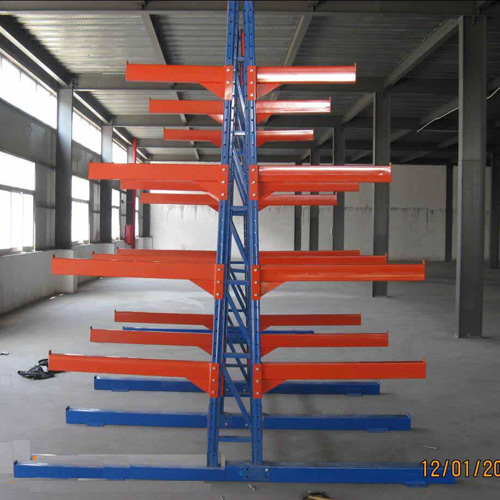 懸臂式貨架主要用于存放長形物料,如型材、管材、板材、線纜等,立柱多采用H型鋼或冷軋型鋼,懸臂采用方管、冷軋型鋼或H型鋼,懸臂與立柱間采用插接式或螺栓連接式,底座與立柱間采用螺栓連接式,底座采用冷軋型鋼或H型鋼。貨物存取由叉車、行車或人工進行。貨架高度通常在2.5米以內(如由叉車存取貨則可高達6米),懸臂長度在1.5米以內,單臂載重通常在1000kg以內。此類貨架多用于機械制造行業和建材超市等。
